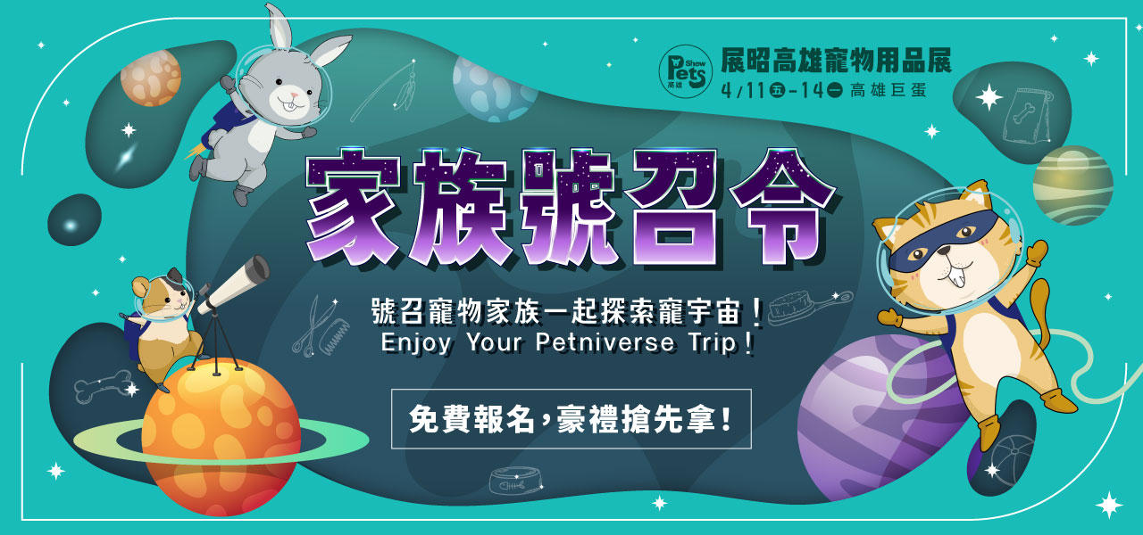 20隻以上同品種寵物預(yù)先報(bào)名,至展覽現(xiàn)場(chǎng)集合拍照,即可獲得【2025展昭高雄寵物用品展搶先場(chǎng)免費(fèi)入場(chǎng)資格乙次】及【家族專(zhuān)屬好禮】。