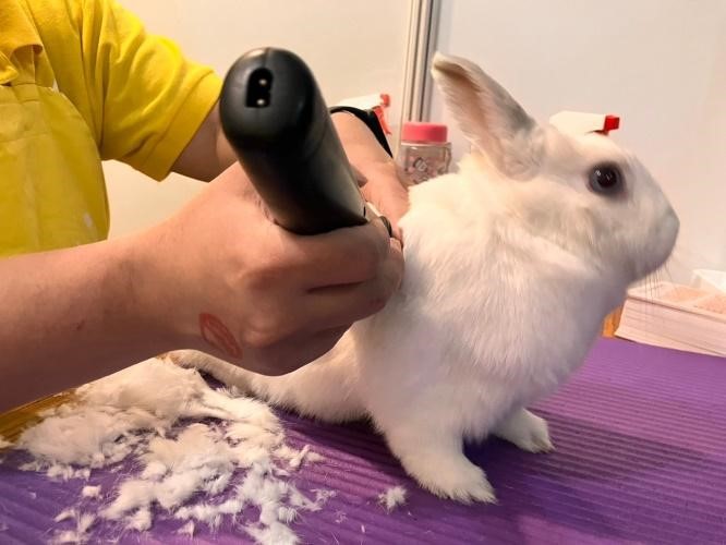 兔兔一年四季都會(huì)換毛,避免舔入過(guò)多毛髮造成腸胃問(wèn)題,最好的方式就是勤於梳毛,而進(jìn)階的方式就是剃毛梳整,愛(ài)兔區(qū)會(huì)將邀請(qǐng)專(zhuān)業(yè)的兔友協(xié)助,以專(zhuān)業(yè)俐落且安全的手法為兔兔或天竺鼠理毛(不做造型、不做病理剃毛與其他部位剃毛)。