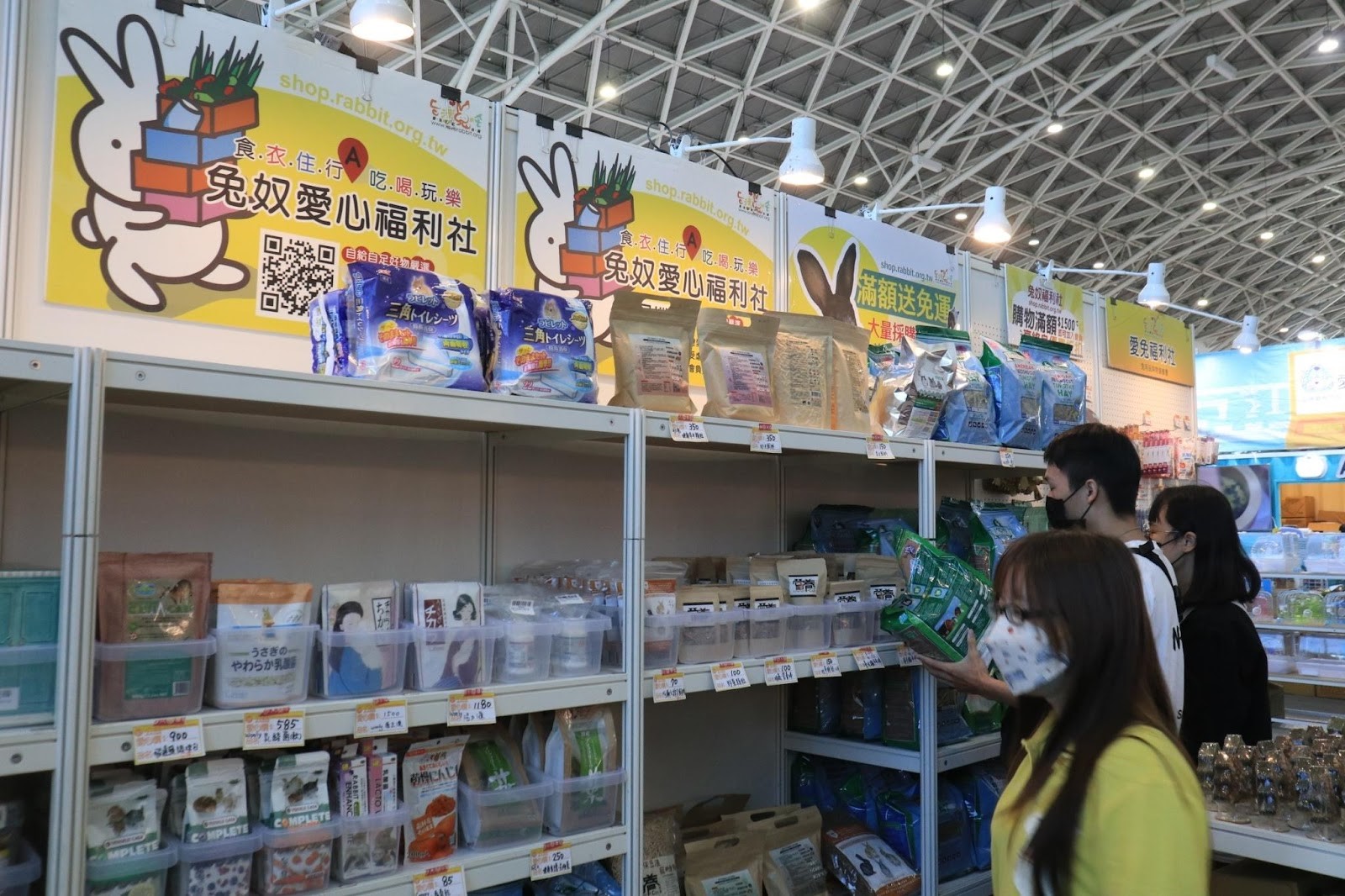 寵物展限定折扣販?zhǔn)郏瑦弁脜^(qū)兔奴福利社現(xiàn)場販?zhǔn)巯薅▋?yōu)惠組合,歡迎來逛展的兔友們把握機(jī)會(huì)購買。