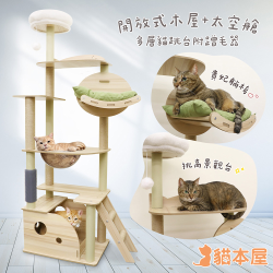 貓本屋 帳篷貓屋+半開放式小木屋 太空艙貓?zhí)_(145cm)附貴妃躺枕