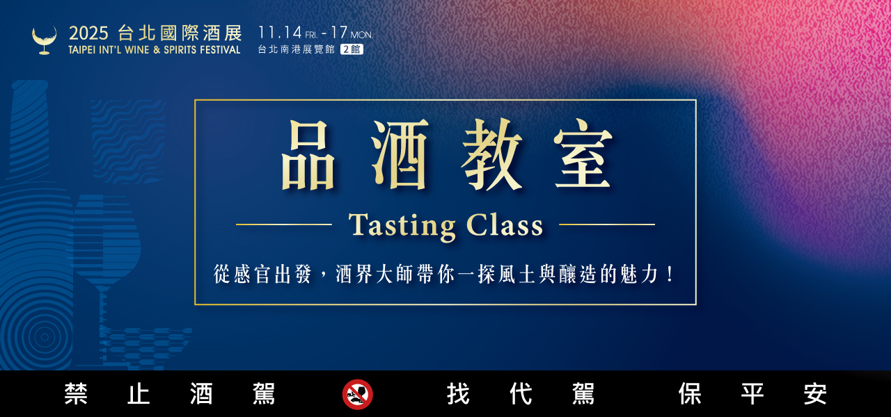 - 品酒教室課程不含入場(chǎng)門票,報(bào)名聽課者需另行購(gòu)買展覽入場(chǎng)門票,或於2025/11/13(四)23:59前完成免費(fèi)索票手續(xù)。